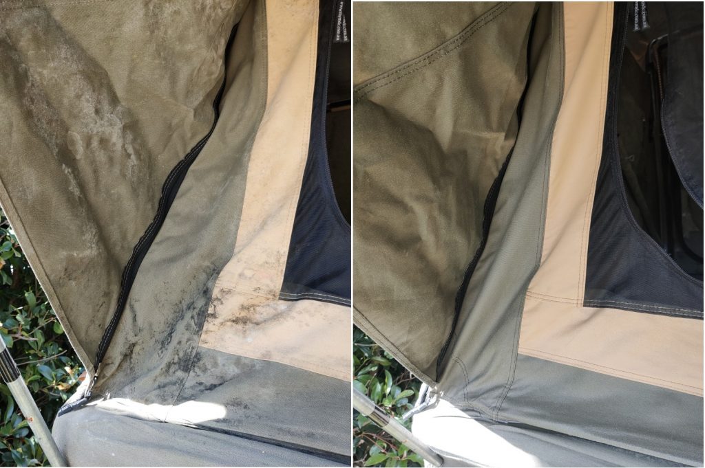 A common issue amongst camper trailer, Bell tent and caravan owners, is packing up the canvas material before it’s 100% dry, or storing it in a humid location for an extended period of time. Next time the camper trailer, tent or caravan annex is unfolded, there is minor and sometimes heavy mould growth. Once mould gets into canvas or similar heavy fabrics, it takes a lot of elbow grease to remove, and quite often the mould will not come out without leaving stains… if at all.