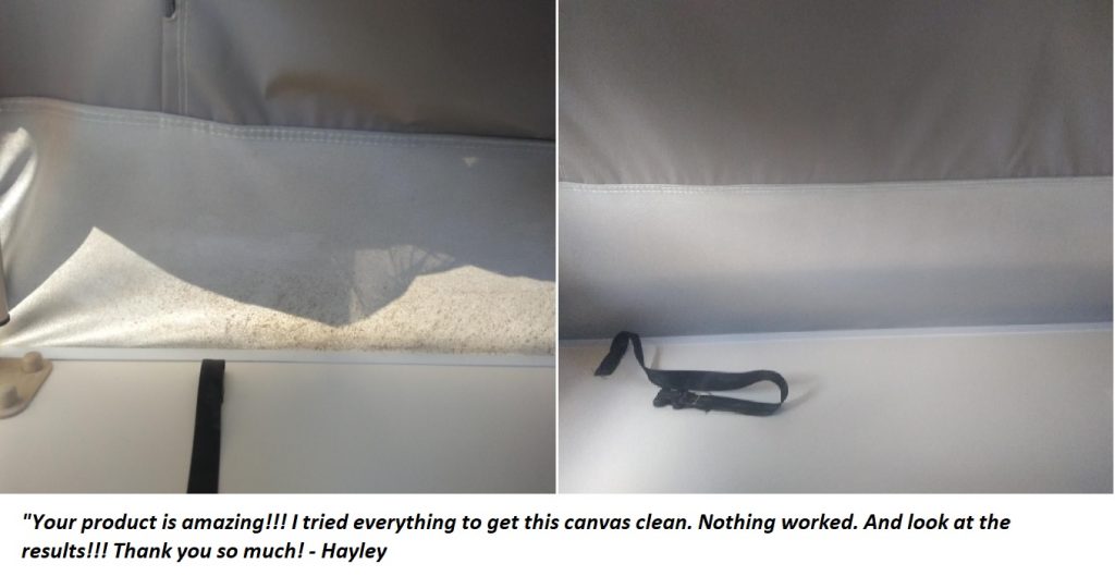We have a $20k camper trailer that we haven’t used in the last 6 months and we opened it up and found it was covered in mould! We got in contact with the manufacturer to enquire about purchasing a new canvas for it but they recommended we try your product first!